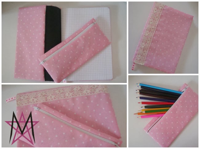 I bought a notebook and a color pencils box. I wanted blank sheets, but couldn't find a single one. I made a book cover for it, and a pencil case. You may recognise the fabric, I've used it a few times before and still have some left. I'm pretty sure little D. will appreciate her gift, can't wait to give it to her.