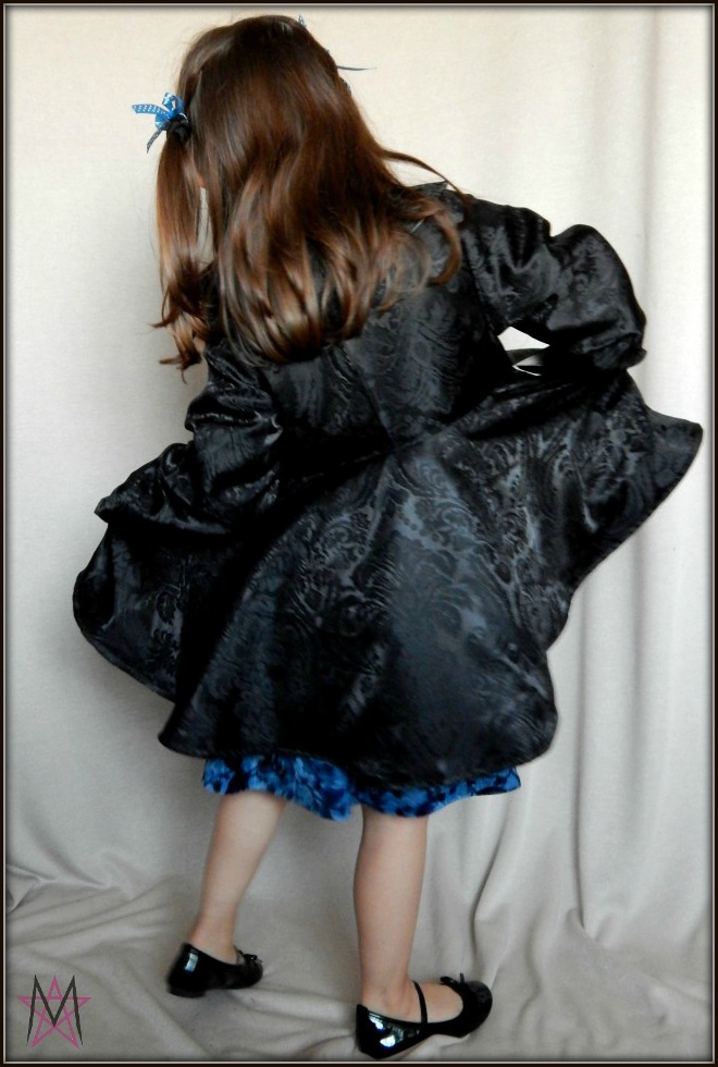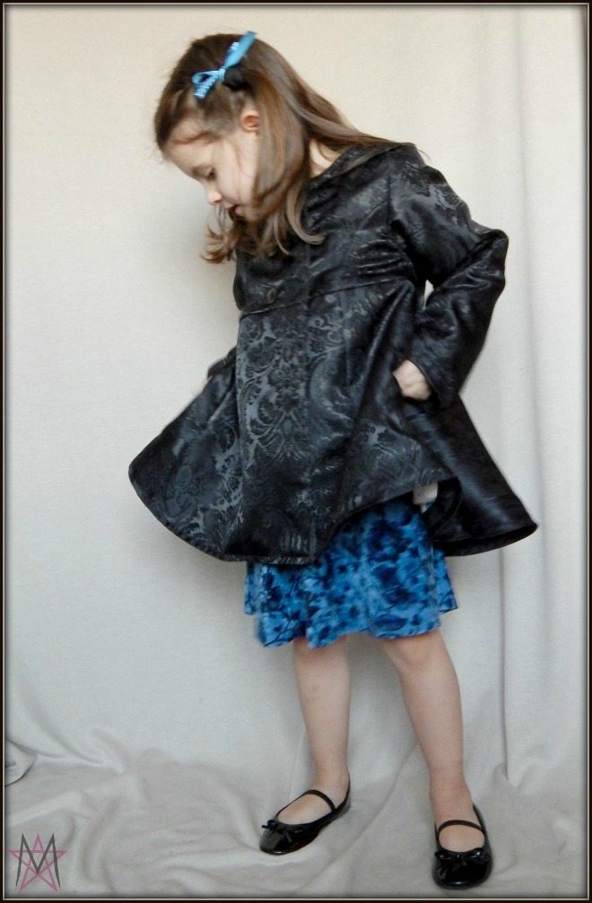 I used the #11 Super Sweet pattern from Ottobre 4/2015 to make it, and changed it by lining it, and slightly altering the front. The sizes start at 86 and go up to 122 cm. I made her the biggest one, she's not quite 122 cm yet, but she's not 116 cm anymore either, and it was saver like this, especially because we are in March now and Spring should be just around the corner, so this will get to be used more often next winter.