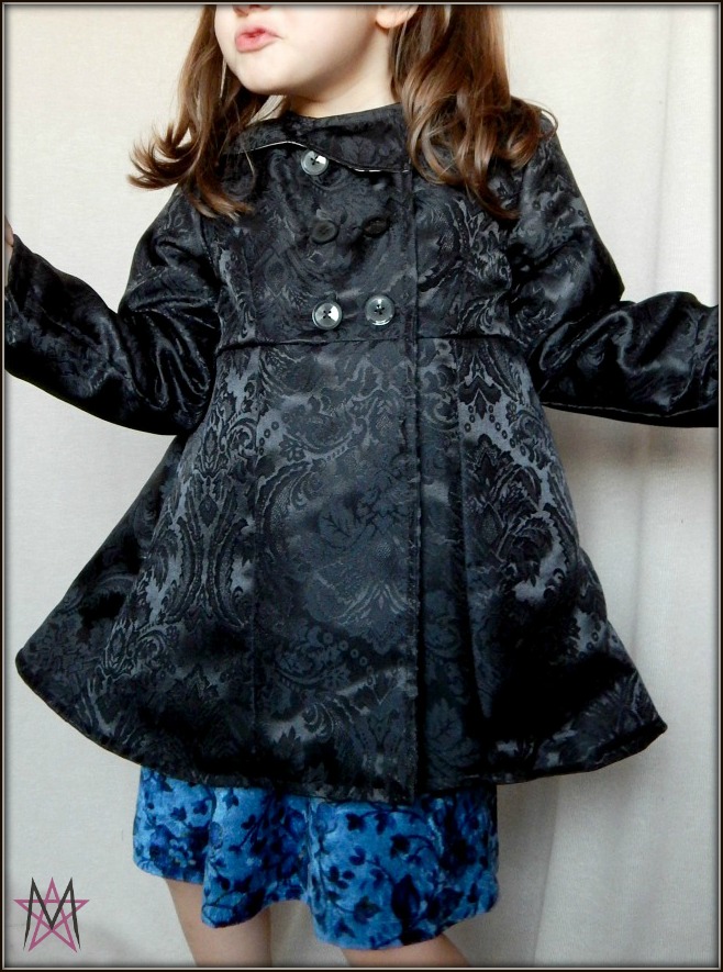 Usei o molde #11 Super Sweet da Ottobre 4/2015 para o fazer, e alterei-o mudando a frente e adicionando o forro. Os tamanhos deste molde vão do 86 ao 122 cm. Fiz o maior para ela, ainda não está bem nos 122 cm mas também já não tem apenas 116 cm e não quis arriscar, mesmo porque estamos em Março, supostamente entramos este mês na Primavera e o casaco terá mais uso no próximo inverno do que propriamente neste.