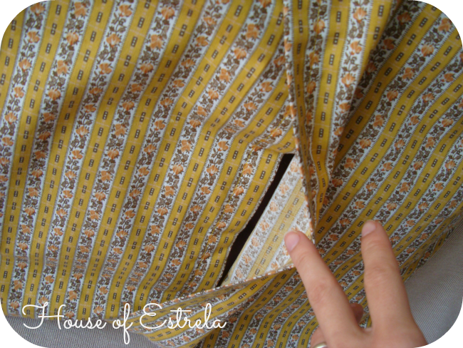 For the lining, I used a very sentimental fabric for me. It's white with little yellow/brownish polka dots. It used to be a sheet from when I was a child. I still remember when my mom bought it together with another one full of little pink hearts. One for me, one for my sister.