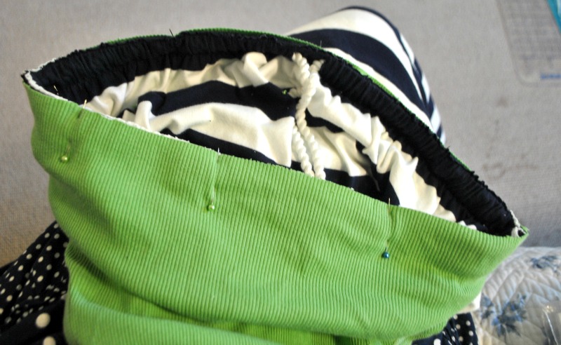 To make the new dress while keeping the nautical style, I simply cut directly above the drawstring.