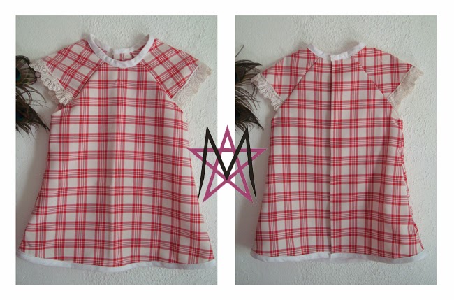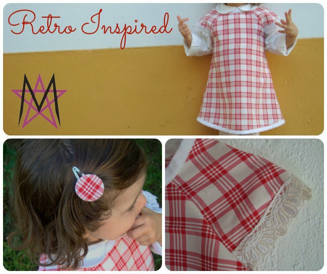So, after all, what makes this look retro? In my opinion, and intention... as I said before, I was inspired in the 70's. The features I tried to bring back from that period were the line of the dress, the lace, the width and the plaid of course. I wanted to include a peter pan collar to it too, but I was attaching the bias already when I suddenly remembered "the collar! Oh gosh, I didn't cut the collar!" - well, too late my dear, I'm not doing that. But, even though the day was rather warm, she wore a white shirt underneath the dress, which -look so convinient - had a peter pan collar too.